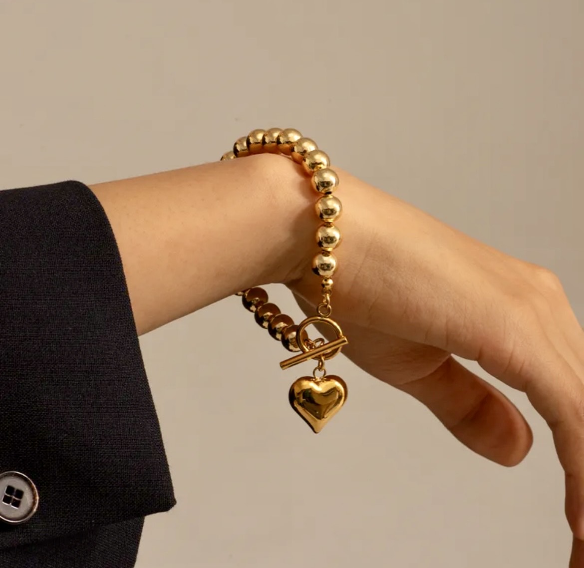 Vergulde bolletjesarmband met hartje!